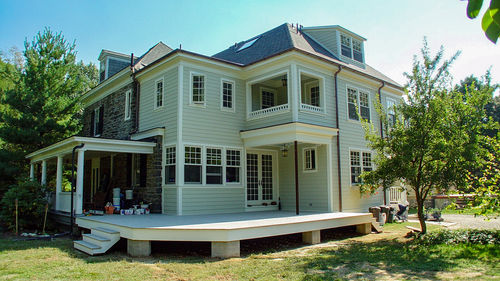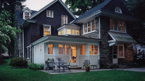 A complete renovation of a home in Wyndmoor. We replaced an existing two-story back wing with a three-story addition and added a fully finished and expanded basement, along with extensive renovations to the remainder of the house. The exterior was also fully renovated to blend the new and existing parts of the house and we added a garden shed, flagstone terrace, and other landscape improvements.
